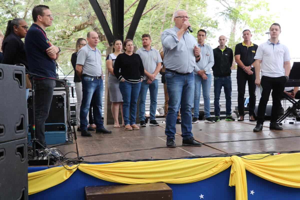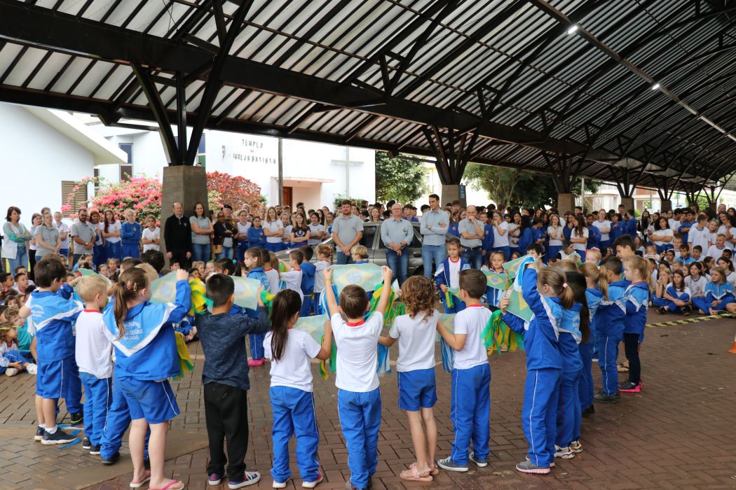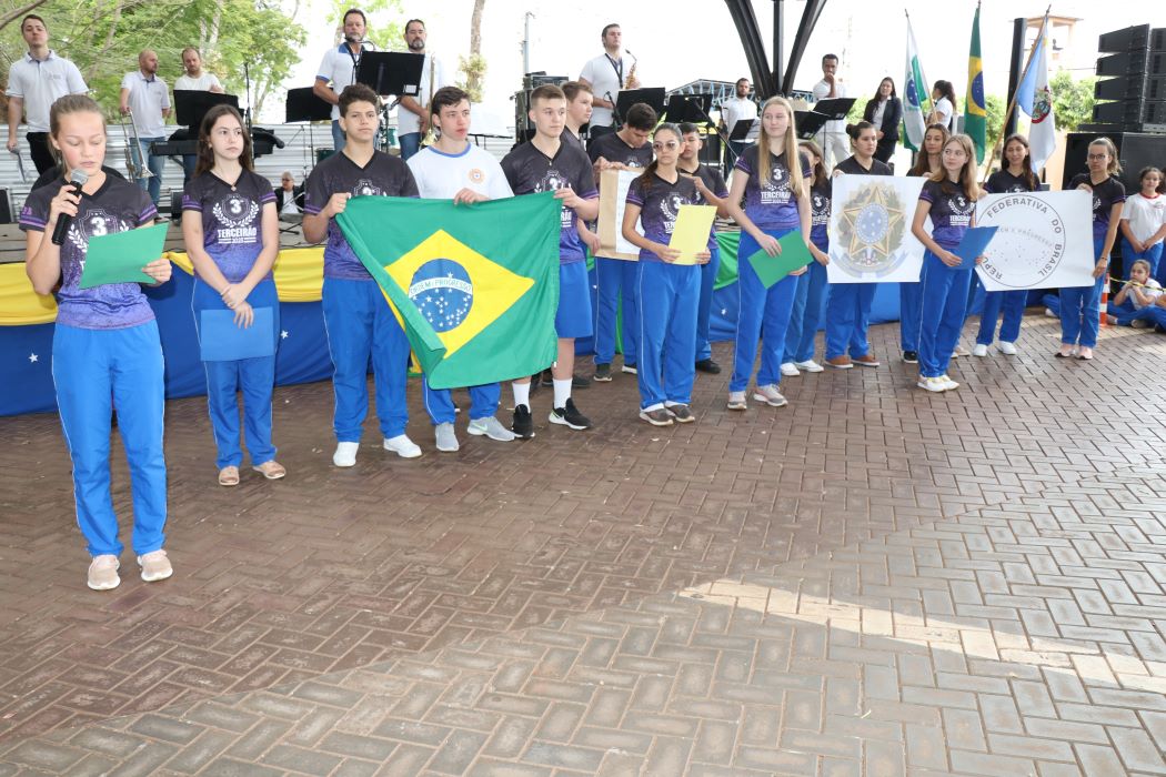 Prefeito Leomar Rohden, o Mano, vice John Nodari destacaram a importância, desde a infância, dos atos de patriotismo que são ensinados e estimulados, principalmente, nos educandários.