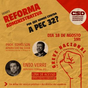 “Nós teremos um debate virtual às 19 horas sobre a reforma administrativa e o porquê a PEC 32 significa a destruição dos serviços públicos. E durante o dia, respeitando a situação e as dificuldades relacionadas à pandemia, nós não teremos atividades públicas. Mas haverá um ato público, com distanciamento social e medidas de segurança, em Cascavel, a partir das 09 horas, no centro da cidade”.