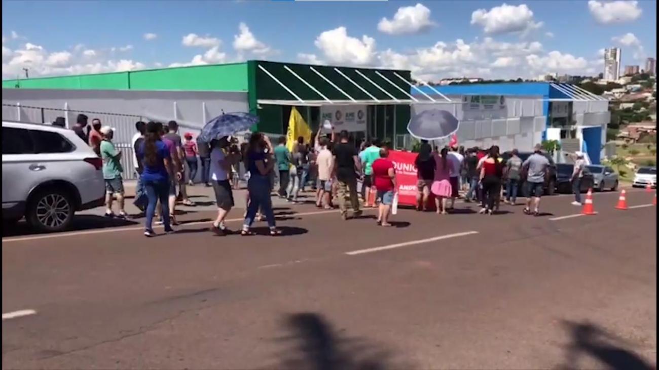 Antes de chegar no prédio na nova sede, grupo passeou pela redondeza em um ato pacífico. Com diversas faixas e cartazes, conseguiram entrar no evento de inauguração, onde estava o Governador Carlos Massa Ratinho, participando da cerimônia para apresentar as novas instalações do Consórcio Intermunicipal de Saúde.