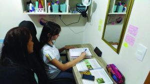 Com apoio da mãe Maria, Eduarda da Silva Costa segue estudando por meio de atividades remotas, aguardando o melhor momento para retornar à sala de aula: “Agora, prefiro o modo remoto, mas se não fosse a pandemia, de jeito nenhum estudaria em casa” (Foto: Divulgação)