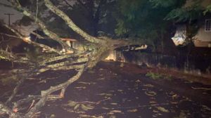 Árvores caíram sobre fiação elétrica e algumas bloquearam ruas. Na vila A, região Norte da cidade foi uma das mais atingidas. As redes telefônicas também ficaram mudas durantes toda a noite e madrugada e voltaram a funcionar na manhã deste sábado (22).