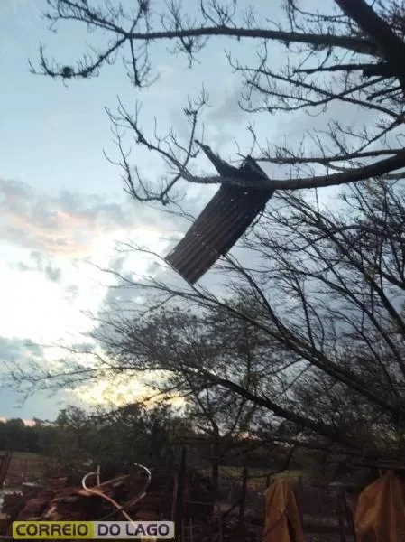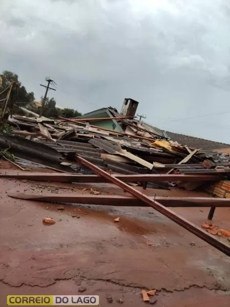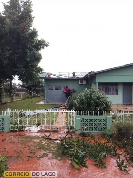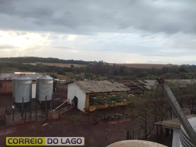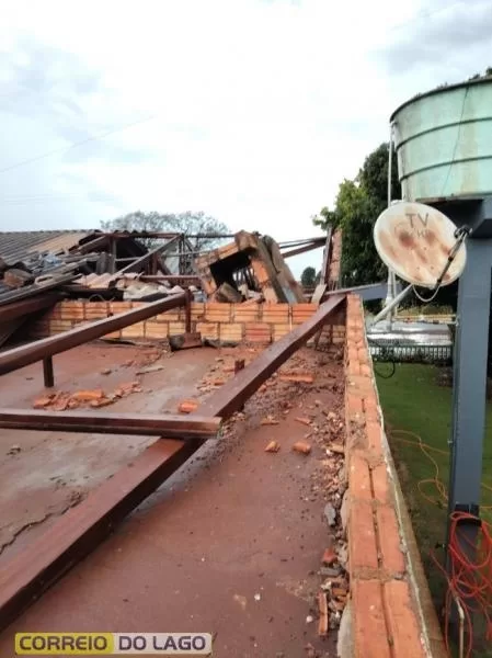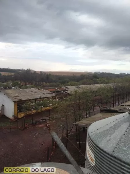 Os ventos intensos destelharam vária casas, galpões e possilgas de chiqueirões, além de danificarem outras estruturas agrícolas.