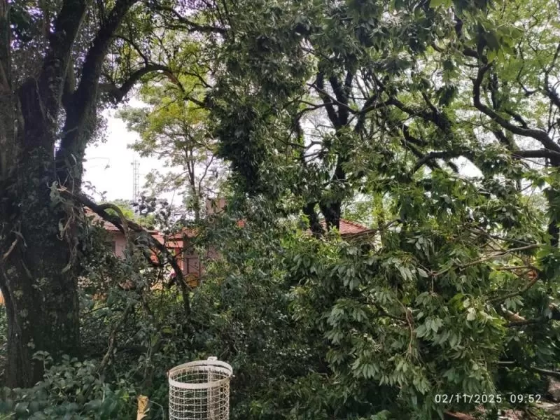 A chuva começou na tarde de sábado (1º) e se intensificou por volta das 03 horas da manhã, acompanhada de rajadas de vento fortes que derrubaram árvores sobre vias e propriedades.