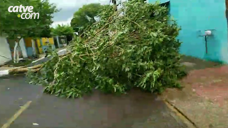 Um imóvel também foi atingido por galhos de uma árvore que caiu na rua Pinheiros. No bairro Porto Meira, quatro árvores caíram, sendo que na rua Morenitas, os galhos atingiram os fios elétricos.