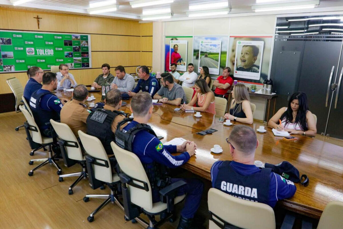 Para tratar os últimos detalhes em relação à organização, nesta quarta-feira (27), na sala de reuniões da Prefeitura de Toledo, aconteceu um encontro envolvendo a coordenação geral do evento, Gabinete do Prefeito, forças de segurança e as secretarias afetas diretamente ao Réveillon. “O principal objetivo desse momento é deixar tudo alinhado para que as famílias tenham um momento de festa e celebração para brindar o que aconteceu de bom em 2023 e receber bem o novo ano”, disse o prefeito Beto Lunitti.