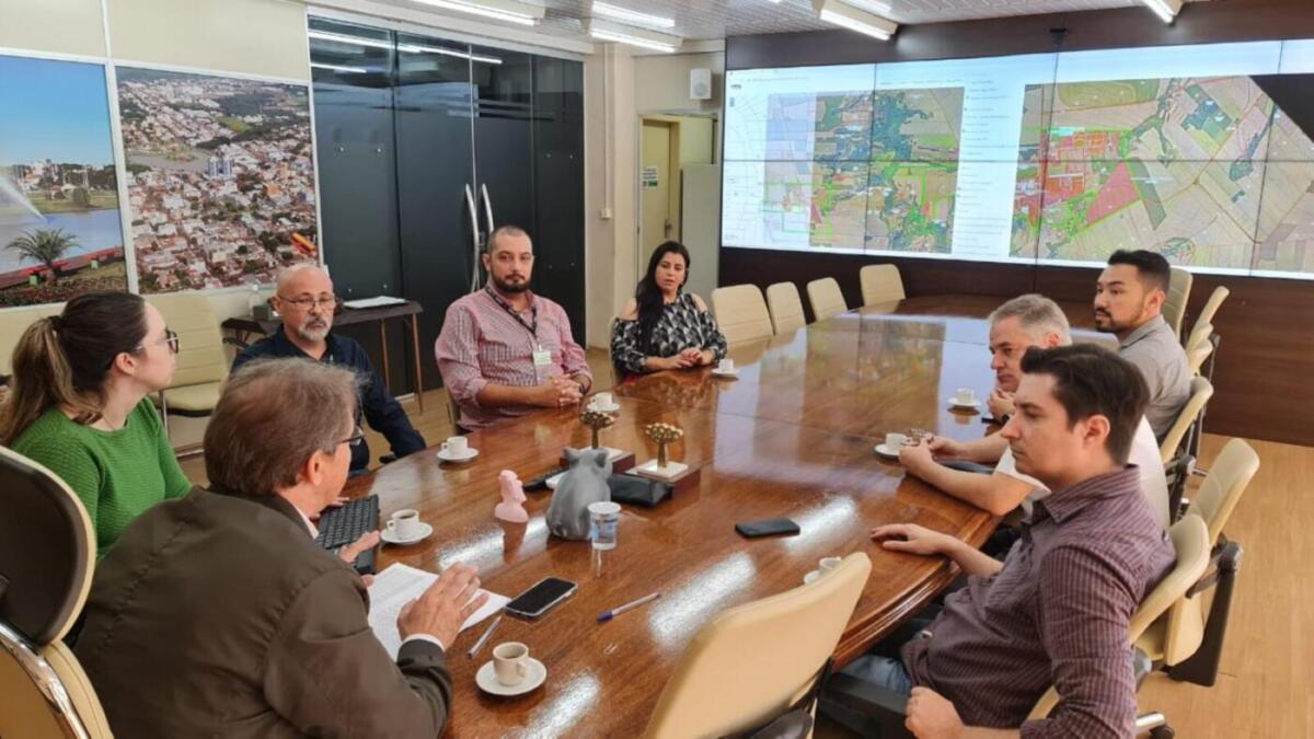 Uma comitiva do Instituto Federal do Paraná (IFPR), Campus de Assis Chateaubriand, esteve em Toledo nesta quinta-feira (04) para tratar do interesse, manifestado pela Prefeitura, de implantação de um campus da instituição no município. O prefeito Beto Lunitti recebeu os visitantes na Sala de Reuniões do Gabinete, onde foram apresentadas as possibilidades de áreas a serem doadas pelo município para a construção da sede em caso de aceite da proposta. Uma das áreas está localizada no Biopark, a soma dos terrenos compreende aproximadamente 28 mil metros quadrados.