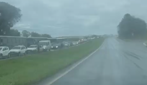 De acordo com informações não oficiais, o motivo seria um acidente entre carros, caminhões e motos, o que formou uma fila imensa na rodovia.