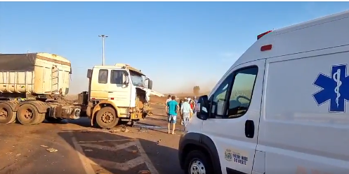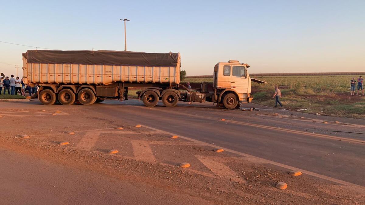 A colisão envolveu um carreta Scania e um veículo da marca Toyota com placas do Paraguai.