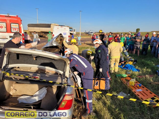 O motorista da carreta foi socorrido com ferimentos leves e encaminhado ao hospital de Entre Rios do Oeste. Já a mulher que estava no carro morreu no local e um homem que estava de carona ficou encarcerado no veículo, ferido gravemente.