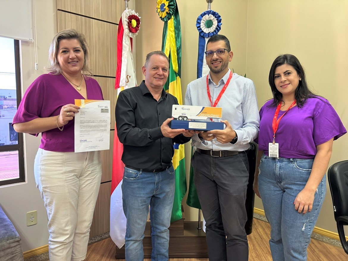 Na quarta-feira (02), em um evento realizado no gabinete do prefeito em exercício, Alex Graunke, o gerente da Unidade do Sesc Marechal Rondon, Fernando Ferreira, entregou uma réplica da carreta, simbolizando a parceria e o sucesso dos atendimentos prestados em Mercedes.