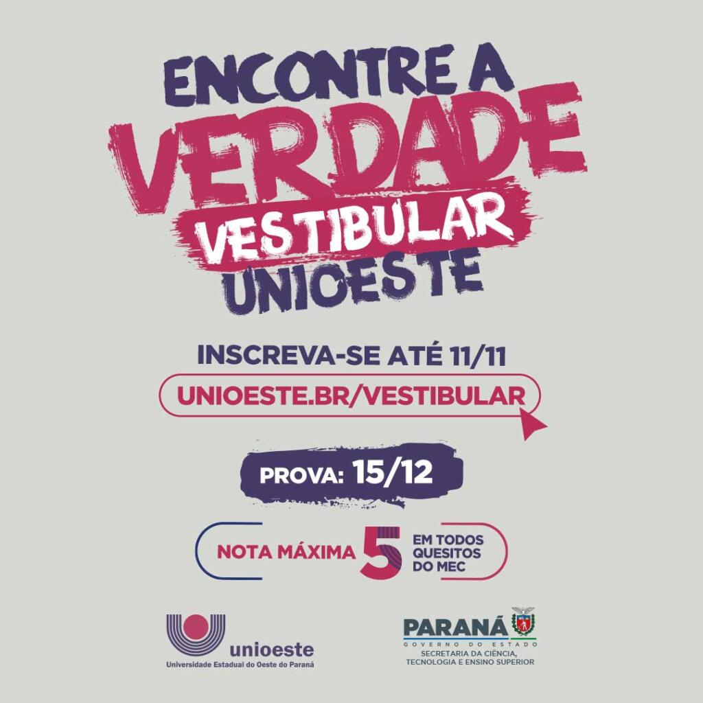 Confira e acesse o Edital através do site: www.unioeste.br/vestibular