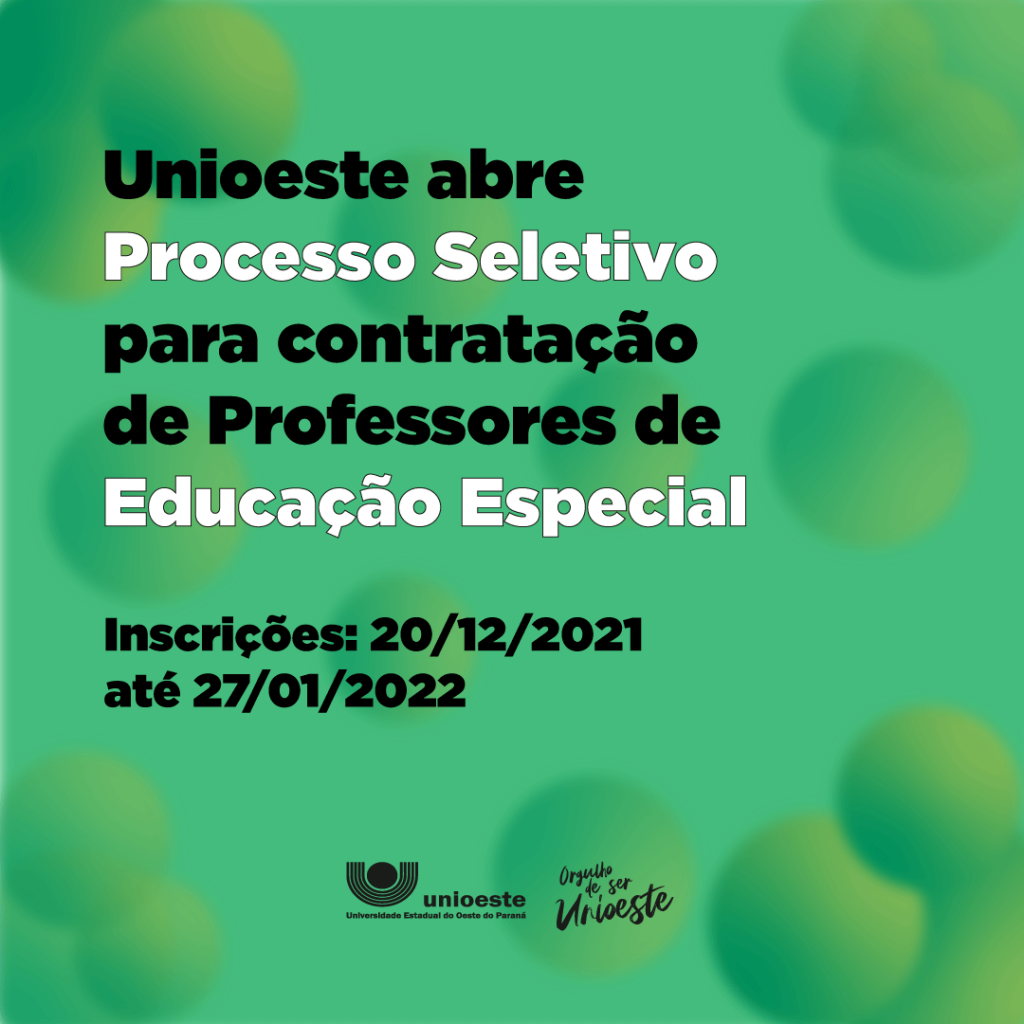 A Universidade Estadual do Oeste do Paraná (Unioeste) divulgou o edital do 3º Processo Seletivo Simplificado 2021 que, desta vez, busca a contratação de professores da área da educação especial.