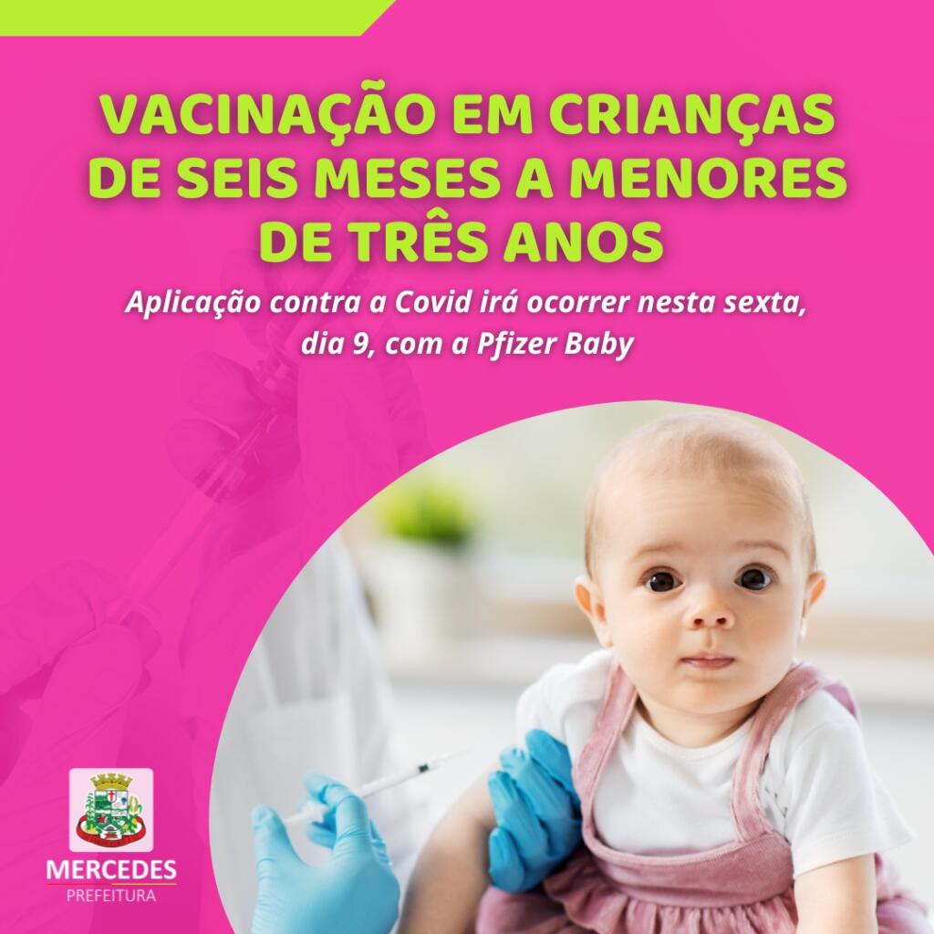 A Secretaria de Saúde de Mercedes dará sequência a vacinação contra a Covid-19 em crianças a partir de seis meses a menores de três anos. Serão aplicadas vacinas pediátrica Pfizer baby.