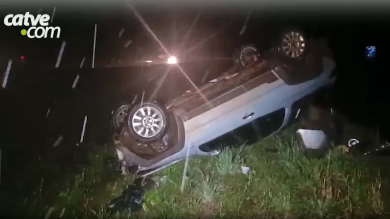 Capotamento foi registrado na noite de quinta-feira (16) na BR-163, entre as cidades de Toledo e Cascavel, nas proximidades da ponte sobre o Rio Lopeí.