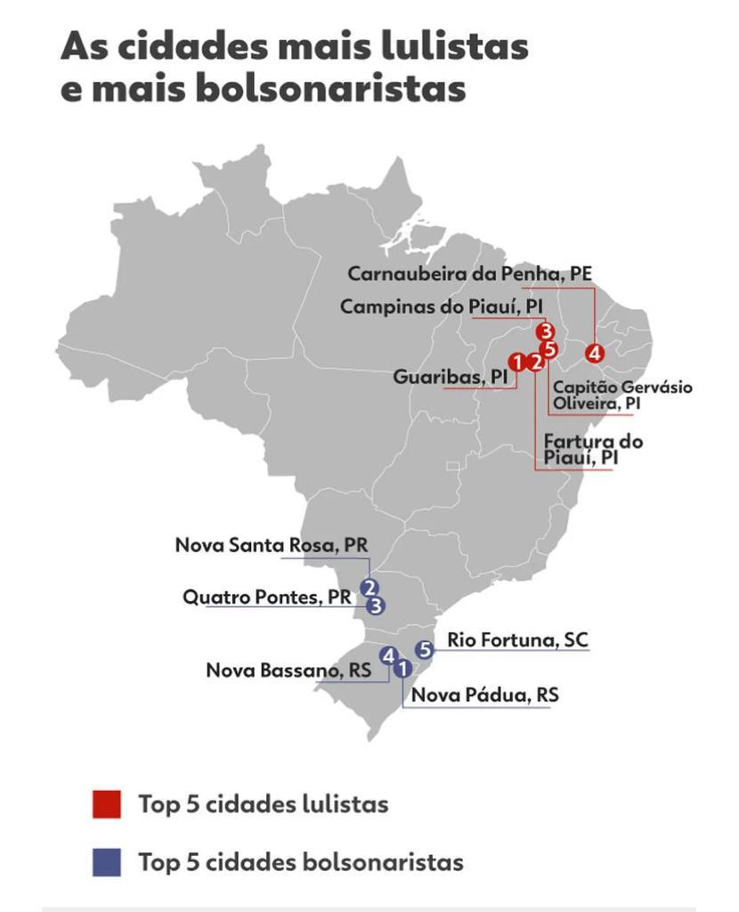 Com essa votação, o município figurou no top 5 das cidades que mais apoiaram Bolsonaro no país no primeiro turno, aparecendo em 2º lugar (clique e leia mais). Com esse número, também é a cidade paranaense que apresentou maior índice de votação pró-Bolsonaro no Estado.