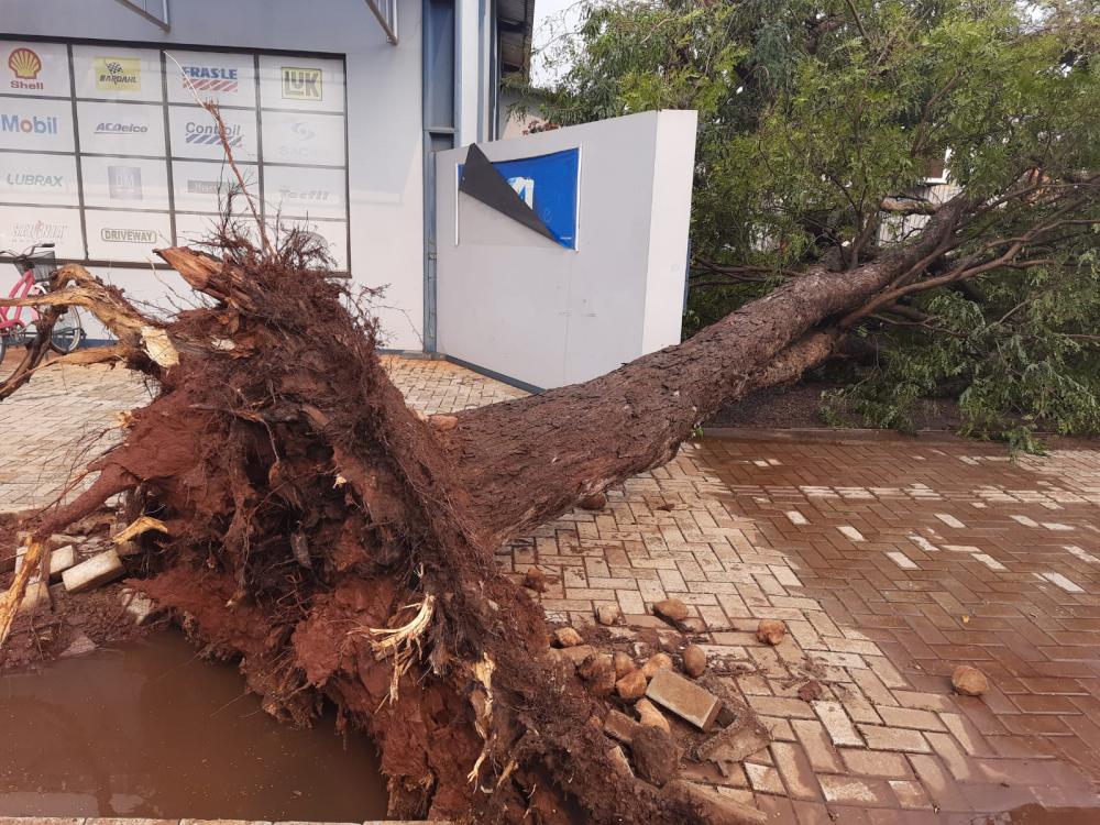 No Recanto Feliz, a queda de um galho grande fechou a rua e estragou fios de energia elétrica.