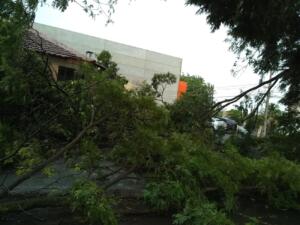 A previsão se confirmou. O tempo fechou por volta das 13 horas desta quinta-feira (24) e a chuva chegou em Marechal Cândido Rondon. A chuva veio mansa, ao contrário dos ventos. Houve rajadas, o que ocasionou quedas de árvores e muitos galhos em diferentes pontos da cidade, além de destalhamento.