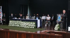 Na manhã desta sexta-feira (1º) foi realizada a sessão solene de posse dos eleitos no dia 15 de novembro. Foram empossados os nove vereadores e também o prefeito e vice-prefeito, Luiz Ernesto de Giacometti e Felipe Zago, respectivamente. A sessão aconteceu no Teatro Municipal Ludovico Riedi seguindo todos os cuidados sanitários por causa da pandemia.