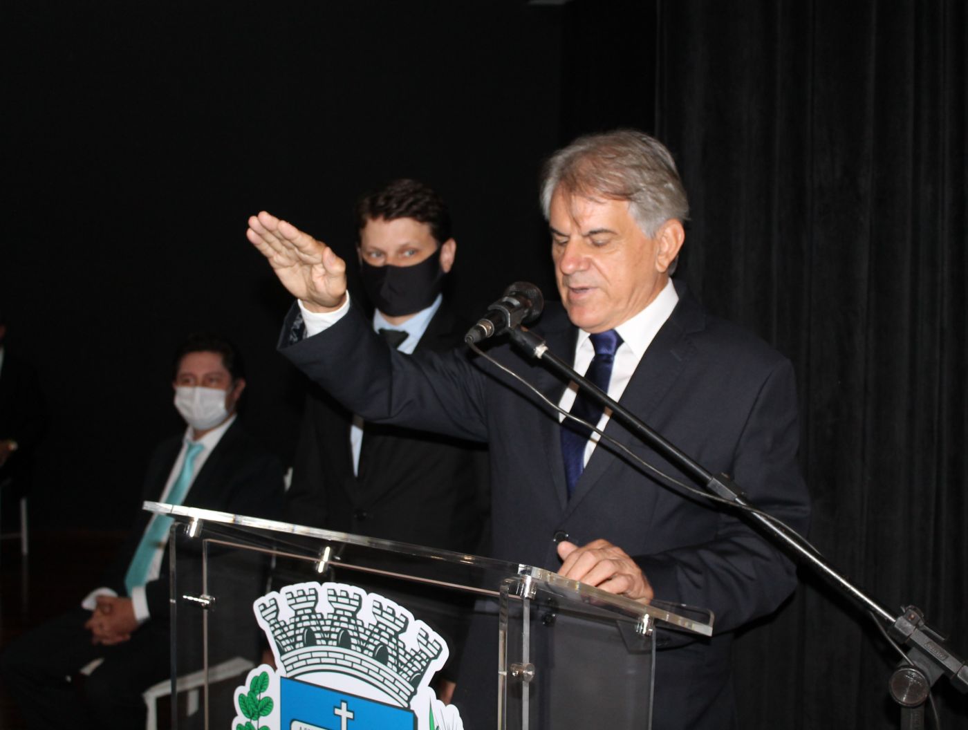 Após a sessão no teatro ocorreu a cerimônia de transição na Prefeitura, ocasião em que vereadores também se fizeram presentes.