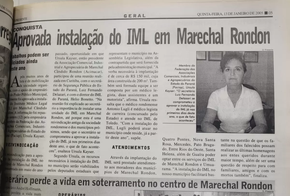 Em janeiro de 2005, Marechal Cândido Rondon celebrava uma conquista considerada histórica para a área da segurança pública e da saúde: a aprovação da instalação de uma unidade do Instituto Médico Legal (IML) no município. A decisão veio após anos de reivindicações da comunidade, lideranças locais e entidades representativas, que defendiam a necessidade de um atendimento mais próximo e humanizado para a população regional.