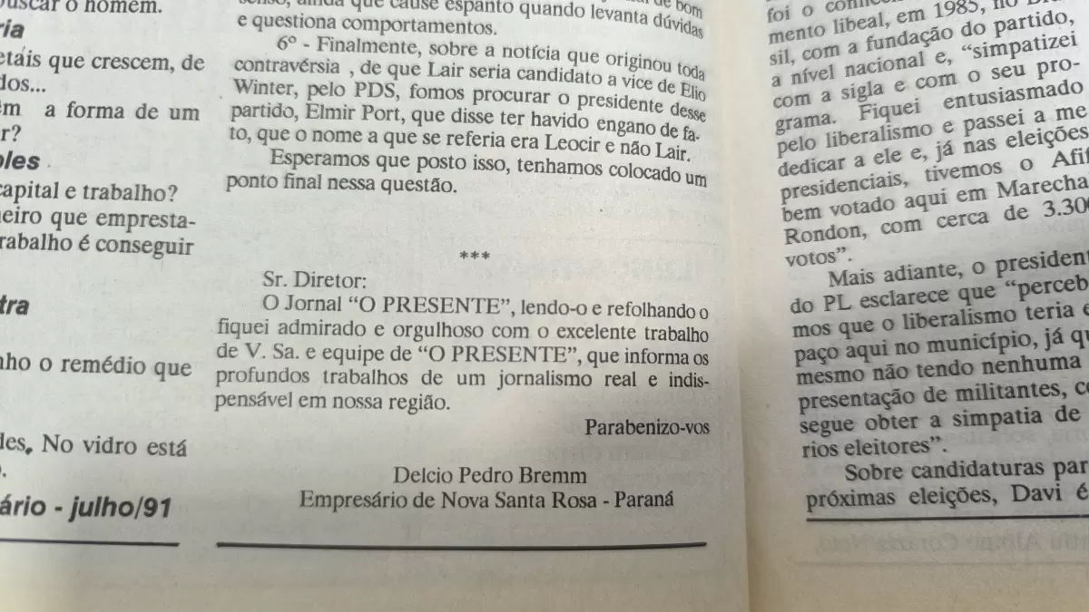 Como parte das comemorações rumo aos 35 anos de fundação, O Presente lançou, em outubro, a coluna Passado no Presente, um tributo à sua trajetória e à memória coletiva de Marechal Cândido Rondon e região.