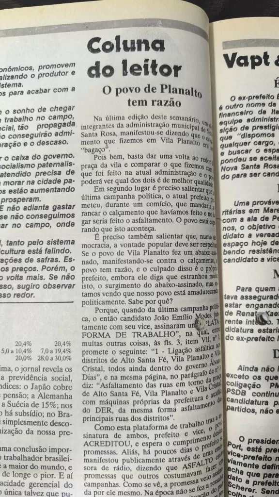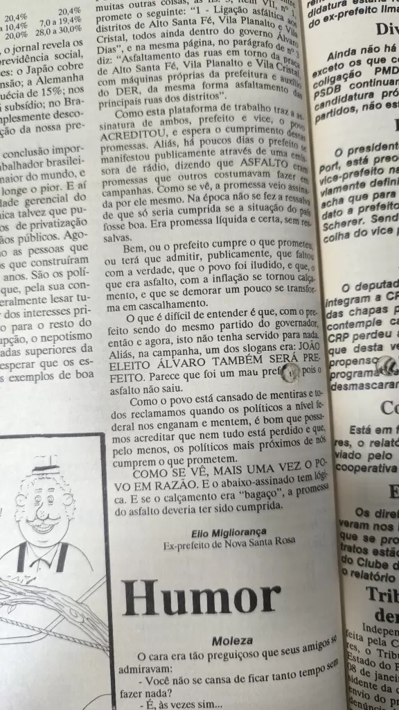 Confira abaixo coluna em 1991, no jornal impresso, e em 2025, no site de O Presente.
