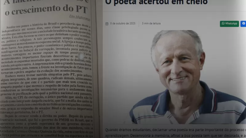 Desde os tempos de crítica política mais intensa, como em sua emblemática coluna “A falência das elites e o crescimento do PT”, até textos mais recentes como “O poeta acertou em cheio”, Elio Migliorança mostra sua versatilidade ao transitar entre o comentário crítico e a valorização da memória e da educação.