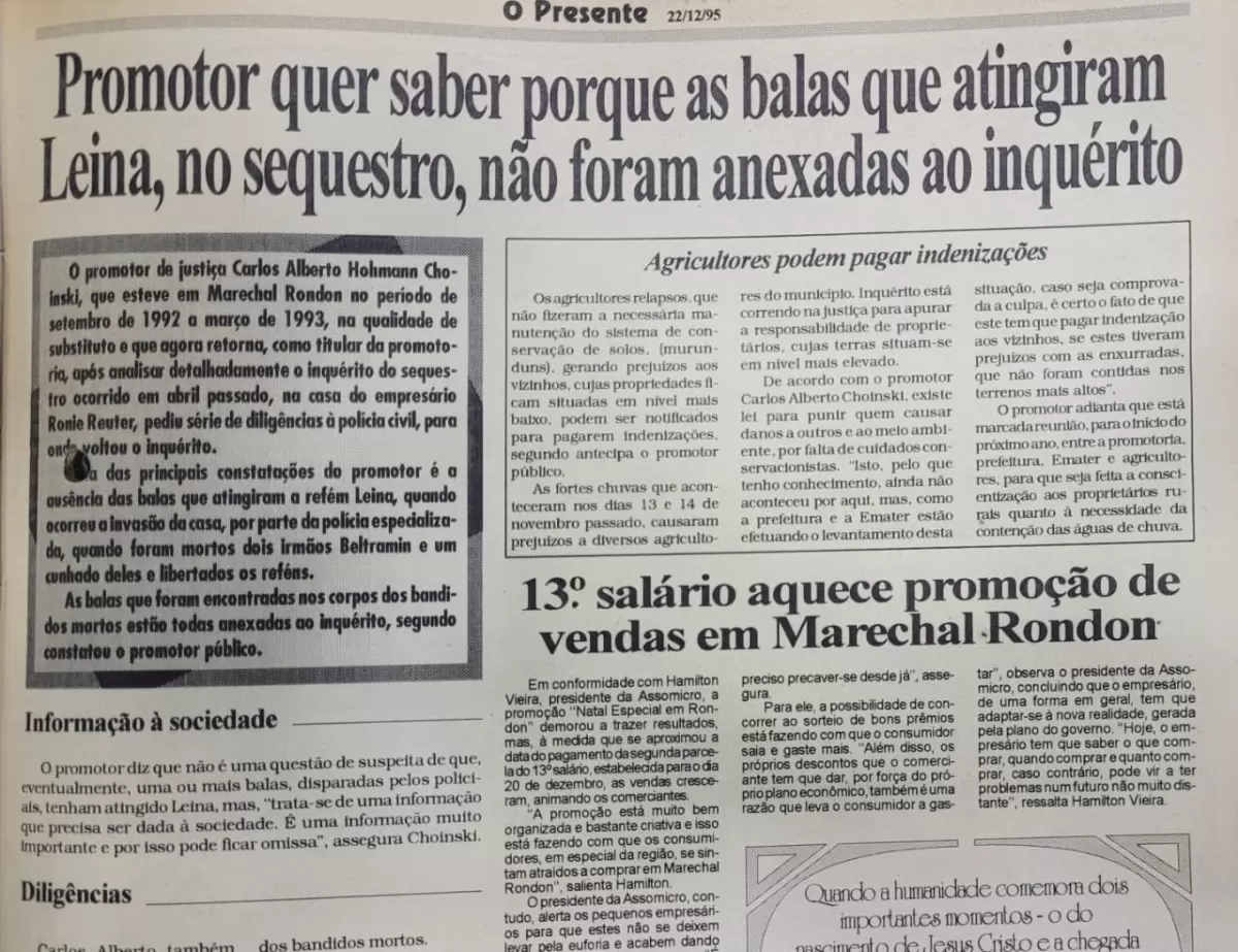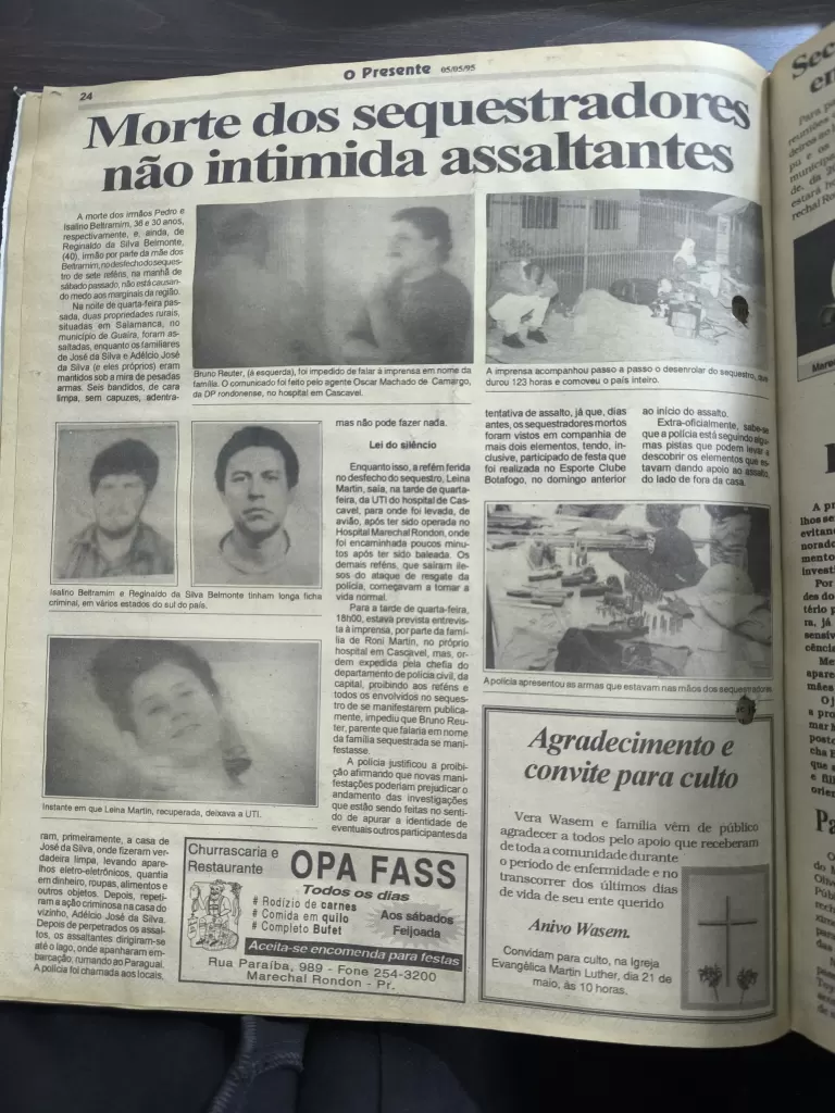 Durante dias, informações sobre o sequestro dominaram as páginas do jornal, registrando negociações, a atuação da polícia e a reação da comunidade. O episódio ficou marcado não apenas pelo valor envolvido e pela ousadia dos criminosos, mas também pela forma como a população acompanhou cada detalhe, mostrando solidariedade e medo, ao mesmo tempo.