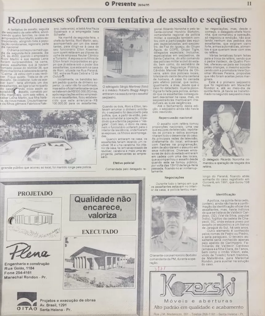 Em 1995, Marechal Cândido Rondon foi palco do maior sequestro registrado no Paraná até então. O caso mobilizou autoridades, imprensa e moradores, trazendo tensão e preocupação à cidade.