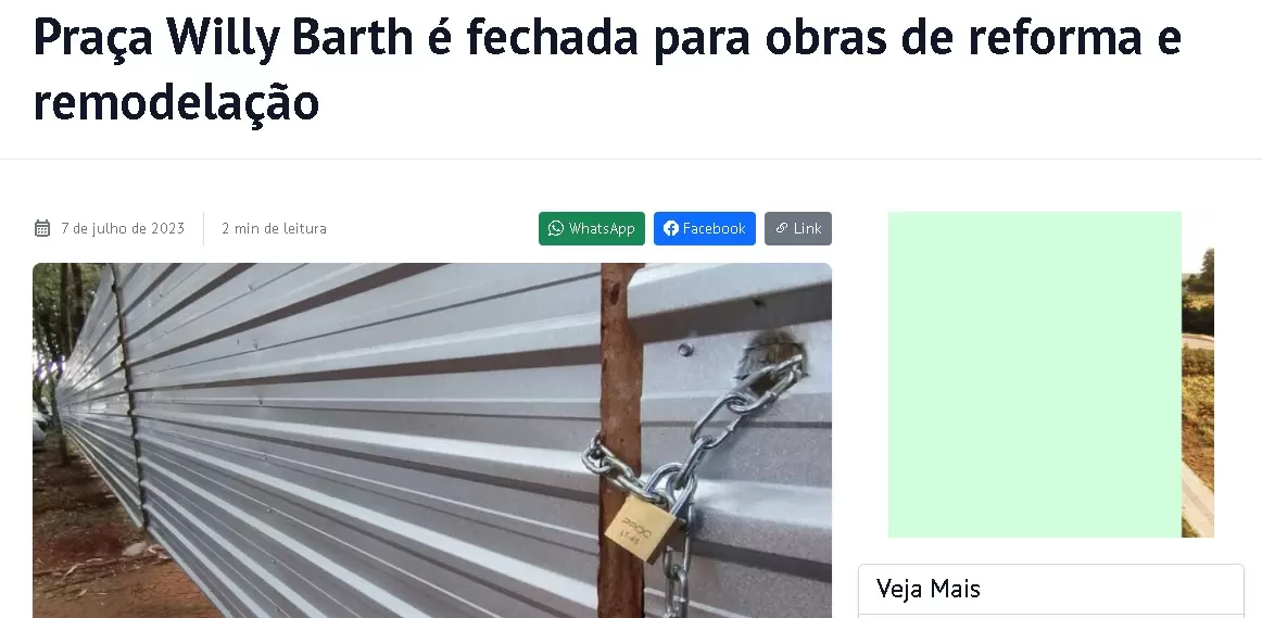 Atualmente a Praça Willy Barth também passa por revitalização: