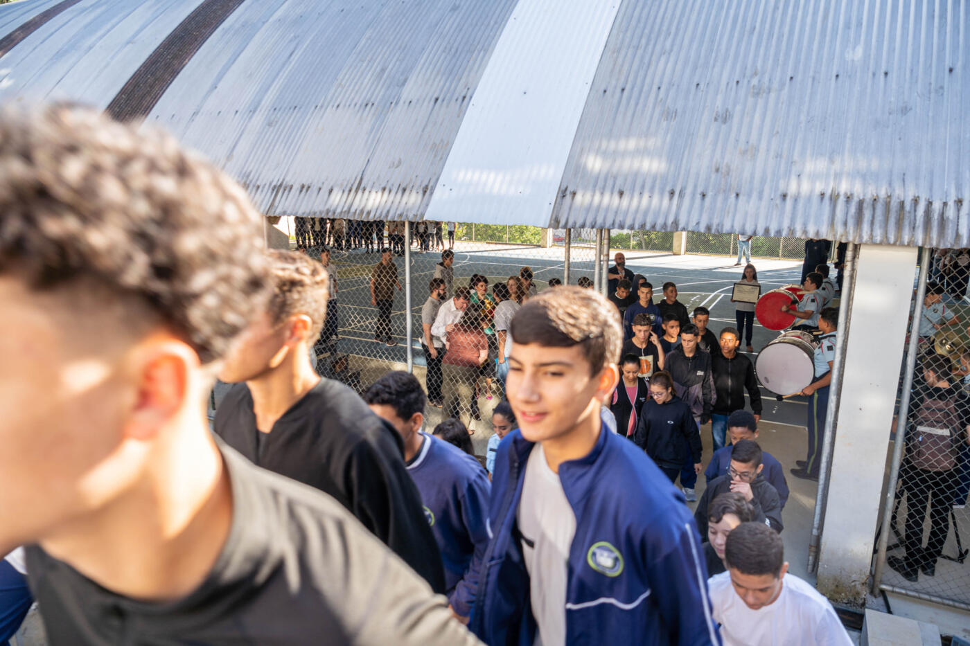 Implementada em 2023 em 1,7 mil colégios estaduais, a Chamada Inteligente consiste numa solução de reconhecimento facial que agiliza o processo de chamadas nas salas de aula. Basta que o professor tire de uma a quatro fotos da turma para que o sistema reconheça os estudantes nas imagens e conceda a presença automaticamente. Tudo é feito por meio do aplicativo Escola Paraná Professores ou pelo Registro de Classe On-line (acessado em um navegador de internet).
