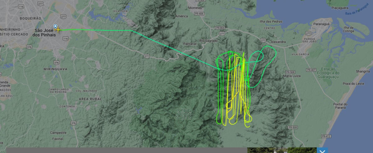O avião com três pessoas está desaparecido há 48 horas, na Serra da Prata, no litoral do Paraná. A aeronave partiu de Umuarama, na manhã de segunda-feira (3), e deveria ter pousado no Aeroporto Santos Dumont, em Paranaguá, às 10h24, mas sumiu do radar 10 minutos antes, às 10h14, a cerca de 25 quilômetros do destino.