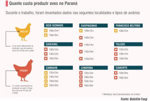 O presidente da Comissão Técnica da Avicultura da Faep, Carlos Bonfim, lembra que o levantamento de custos é uma ferramenta crucial para os avicultores não trabalharem no escuro. “É um instrumento muito bom para a gente avaliar o custo do dia a dia, na atividade, para ver como estão andando as coisas. Assim, temos como comparar o nosso estudo com as planilhas disponibilizadas pelas empresas integradoras. Há alguns anos fazemos esse trabalho e tendo resultados em negociações de reajustes”, pontua.