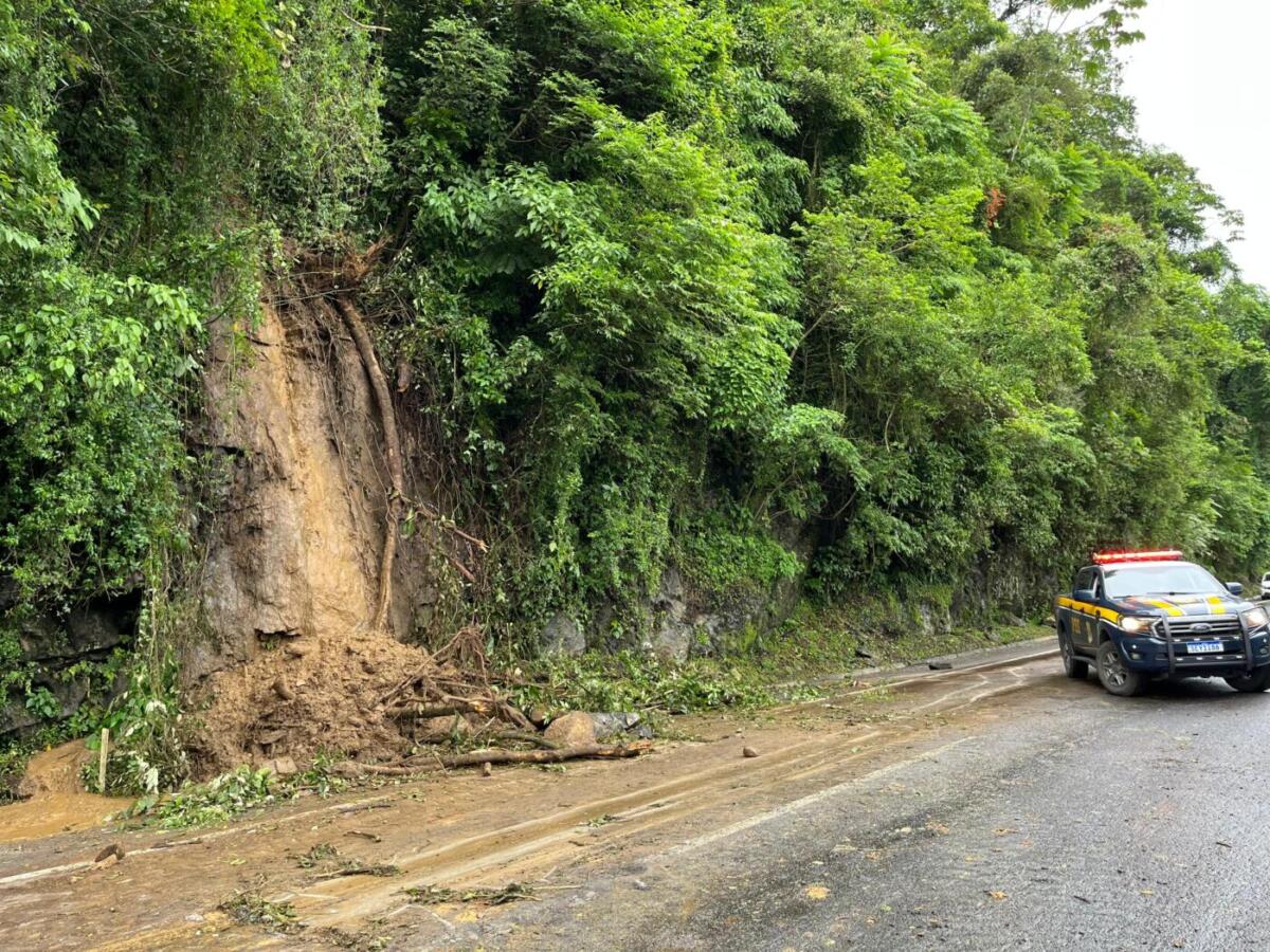 Conforme informado pela Polícia Rodoviária Federal (PRF), houve queda de pedras e a sequência houve interdição até a concessionária que administra o trecho conseguir estabilizar a situação.