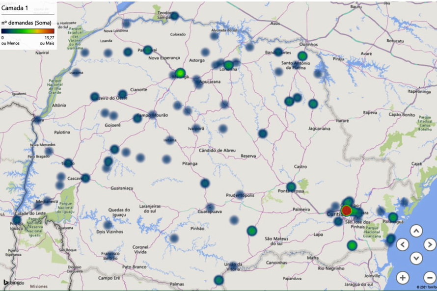 As denúncias estão dispostas por regional de saúde e por município, em tabelas, acompanhadas de um “mapa de calor” que indica a região com maior incidência de registros.