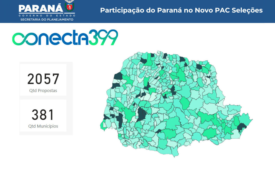 O secretário estadual do Planejamento, Guto Silva, destacou o grande número de propostas feitas pelo Paraná – 381 municípios participaram enviando, ou 95% do total. Essa participação foi alcançada com o auxílio de um programa do Estado, o Conecta399. Iniciativa de planejamento e estímulo ao desenvolvimento territorial do Paraná, o Conecta399 é estruturado em eixos de capacitação, projetos, fomento e interlocução. Ele se destina a fortalecer as redes de parcerias e multiplicar políticas públicas efetivas em diversas áreas.