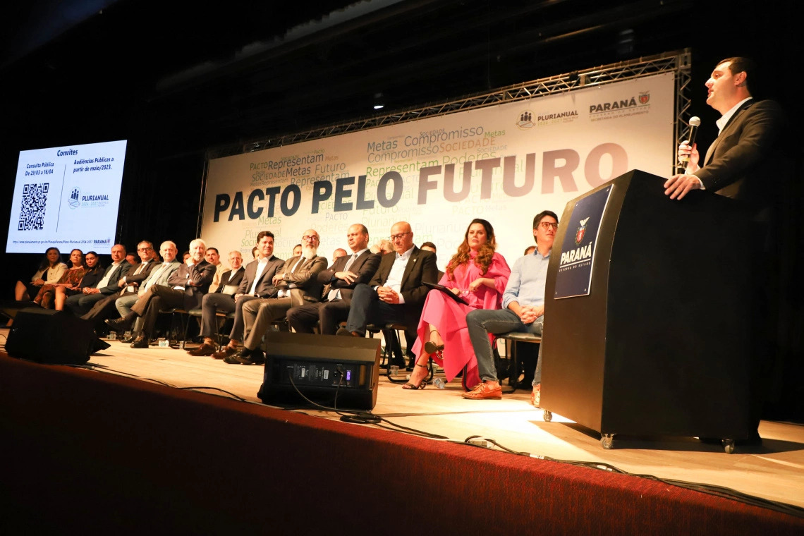 O governador Carlos Massa Ratinho Junior lançou nesta quarta-feira (29), no Museu Oscar Niemeyer, a iniciativa Pacto pelo Futuro, que consiste na participação mais ativa de toda a sociedade na elaboração do Plano Plurianual (PPA) 2024-2027. O objetivo é promover um diálogo efetivo com os demais poderes e a população para o planejamento de médio e longo prazo do Paraná, além de tornar mais claro à população o trabalho realizado pelos órgãos e departamentos do Executivo, Legislativo e Judiciário.