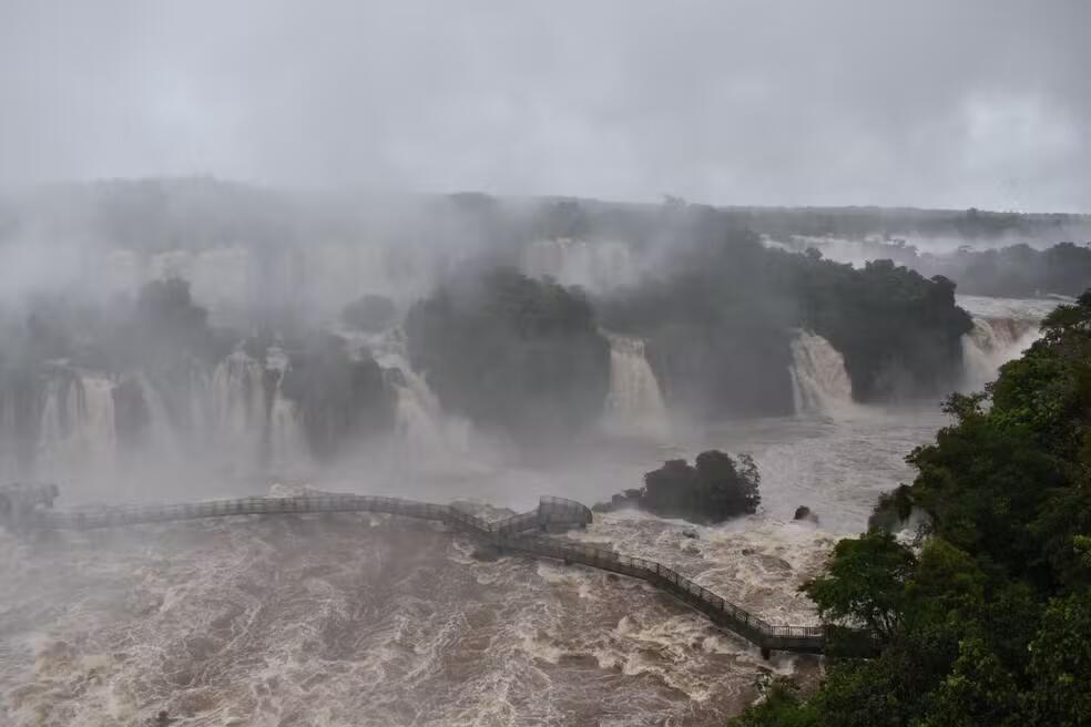 Com vazão cinco vezes acima da média nas Cataratas do Iguaçu, a passarela próxima às quedas precisou ser fechada como mediada de segurança na manhã desta terça-feira (10), informou a assessoria do Parque Nacional do Iguaçu.