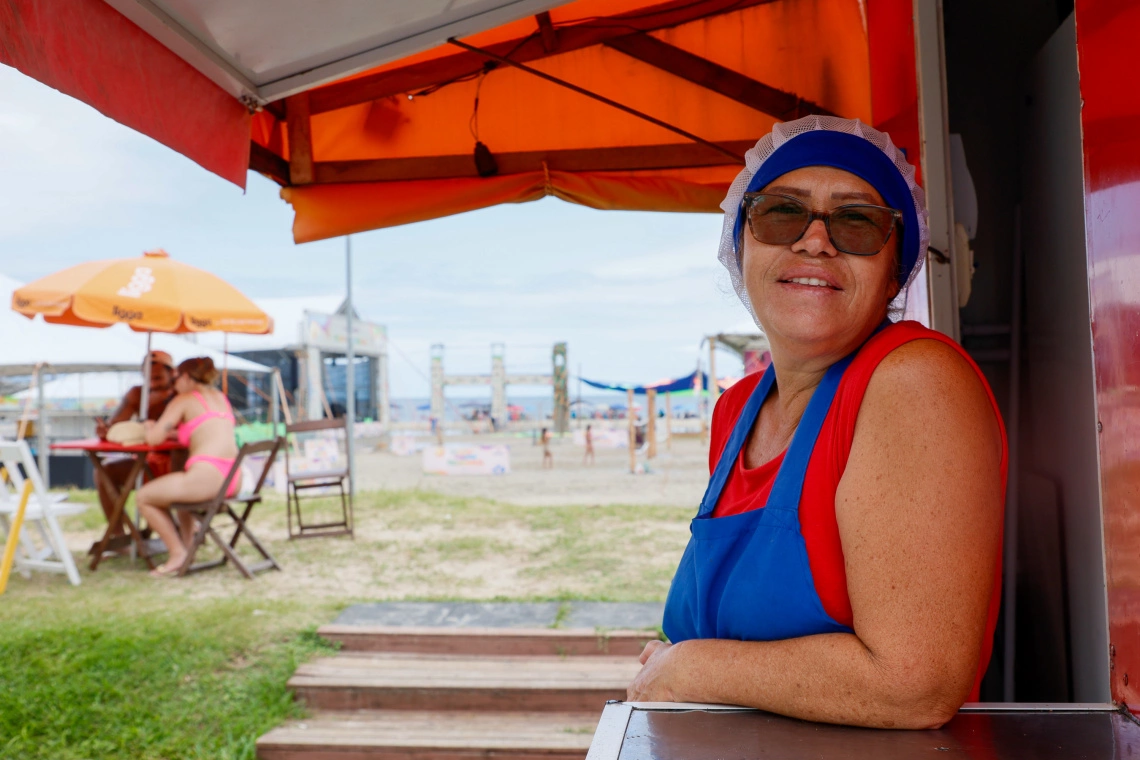 Além do comércio fixo, os ambulantes também celebram o momento. Eduardo dos Reis e Adrielly Nantes, que estão vendendo açaí pela primeira vez na areia, enxergam a temporada como uma oportunidade de transformar suas vidas. “Estamos aqui há 14 dias e vendemos tudo o que trazemos. Com os shows e a nova orla, nossa ideia é ficar até de noite e usar esse dinheiro para sair do aluguel e ter nossa casa própria”, conta.