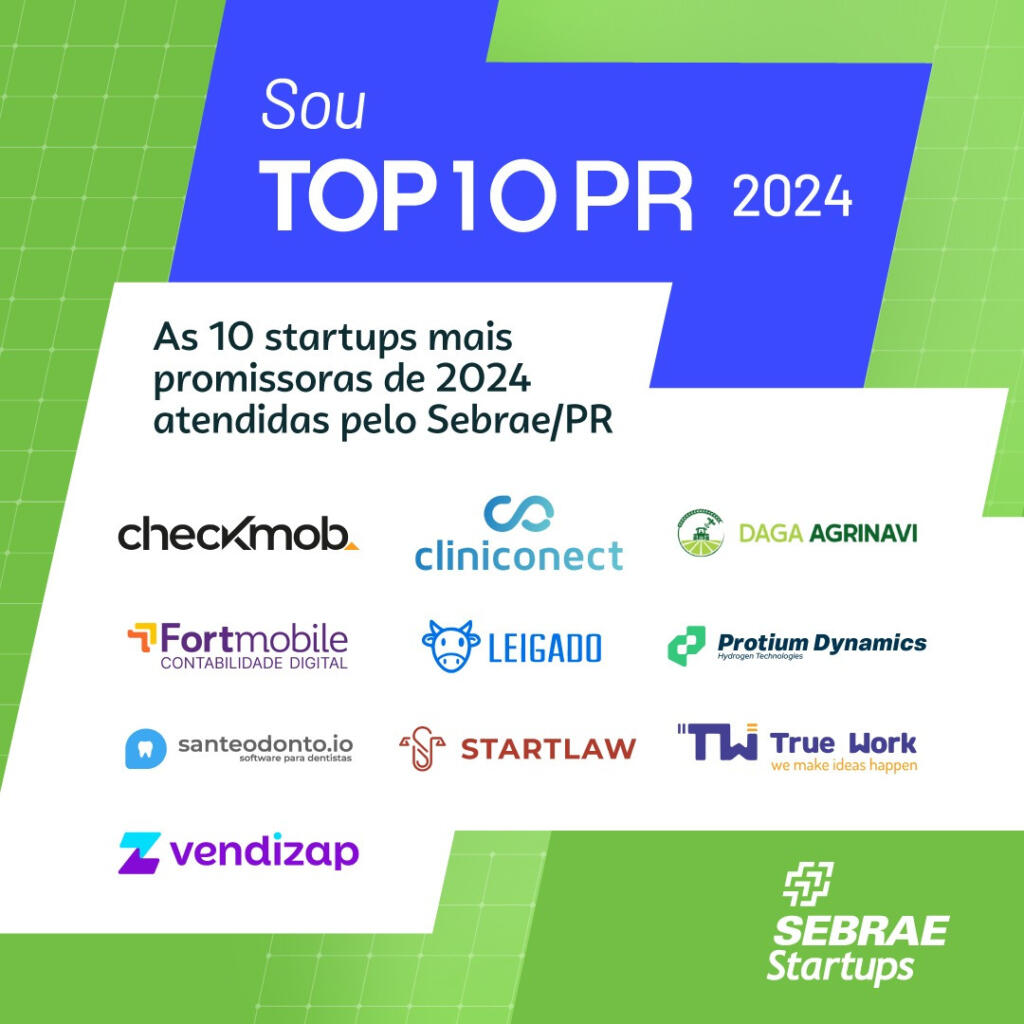 O Sebrae/PR anunciou o nome das startups mais promissoras e atendidas em 2024. O Programa Top10 PR é uma iniciativa que busca identificar e potencializar as dez startups mais promissoras de cada região do estado, com edições anuais.