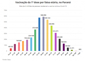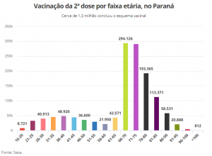 Veja a seguir como está a vacinação por faixa etária, no Paraná: