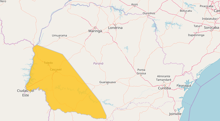 A Defesa Civil do Paraná emitiu, às 09h29 desta sexta-feira (18), um alerta devido às condições do tempo no Estado. O alerta vale para a regiões Oeste e Sudoeste. Clique aqui e veja a área sob alerta ou confira o mapa no final da matéria.