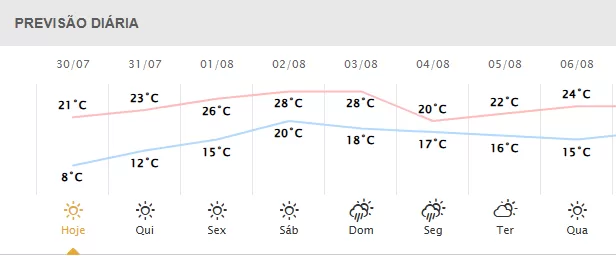 Entre 7 e 10 horas, a temperatura sobe lentamente, com sensação de frio ainda marcante, especialmente em áreas mais altas ou de sombra. A névoa se dissipa gradualmente e dá lugar ao céu claro ou com poucas nuvens. Não há previsão de instabilidades para o restante do dia, que será marcado por clima seco e variação térmica acentuada entre manhã e tarde.