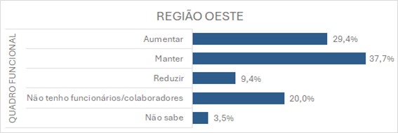 Na região Oeste, 37,7% das empresas planejam manter o quadro funcional e 29,4% devem ampliar o número de colaboradores. Os estabelecimentos com planos de cortes de pessoal correspondem a 9,4%.