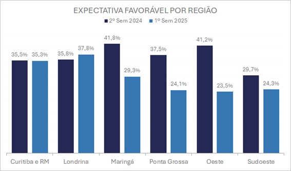 Os empresários da região Oeste estão mais cautelosos neste 1º semestre de 2025, segundo a Pesquisa de Opinião do Empresário do Comércio, realizada pela Federação do Comércio de Bens, Serviços e Turismo do Paraná (Fecomércio PR) e pelo Sebrae/PR. Enquanto a média de confiança estadual foi de 31,2%, na região Oeste 23,5% do empresariado acreditam na expansão dos negócios. Na edição anterior da pesquisa, as projeções positivas correspondiam a 41,2%, a segunda mais elevada do estado.