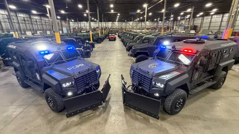 Os sete veículos são da fabricante canadense Roshel INC, fornecedora de agências internacionais de segurança. Entre elas estão a Homeland Security, a U.S. Customs and Border Protection e a NASA, além do Departamento de Defesa do Canadá e da Peel Regional Police, de Toronto.