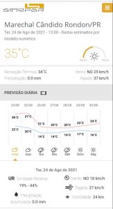 Confira a previsão do tempo para Marechal Cândido Rondon, conforme o Simepar: