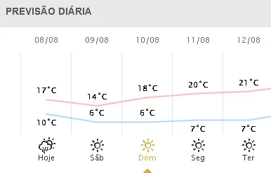 Foz do Iguaçu: mínima 11°C | máxima 17°C – chuva isolada no início do dia, depois sol