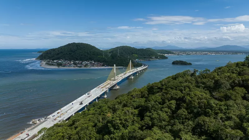 Com investimento superior a R$ 400 milhões, a estrutura é considerada uma das obras mais emblemáticas do Paraná. Além de eliminar a necessidade de travessia por balsa, a ponte terá papel estratégico na integração logística dos municípios do Litoral paranaense, além de melhorar o acesso à Santa Catarina a partir da região.