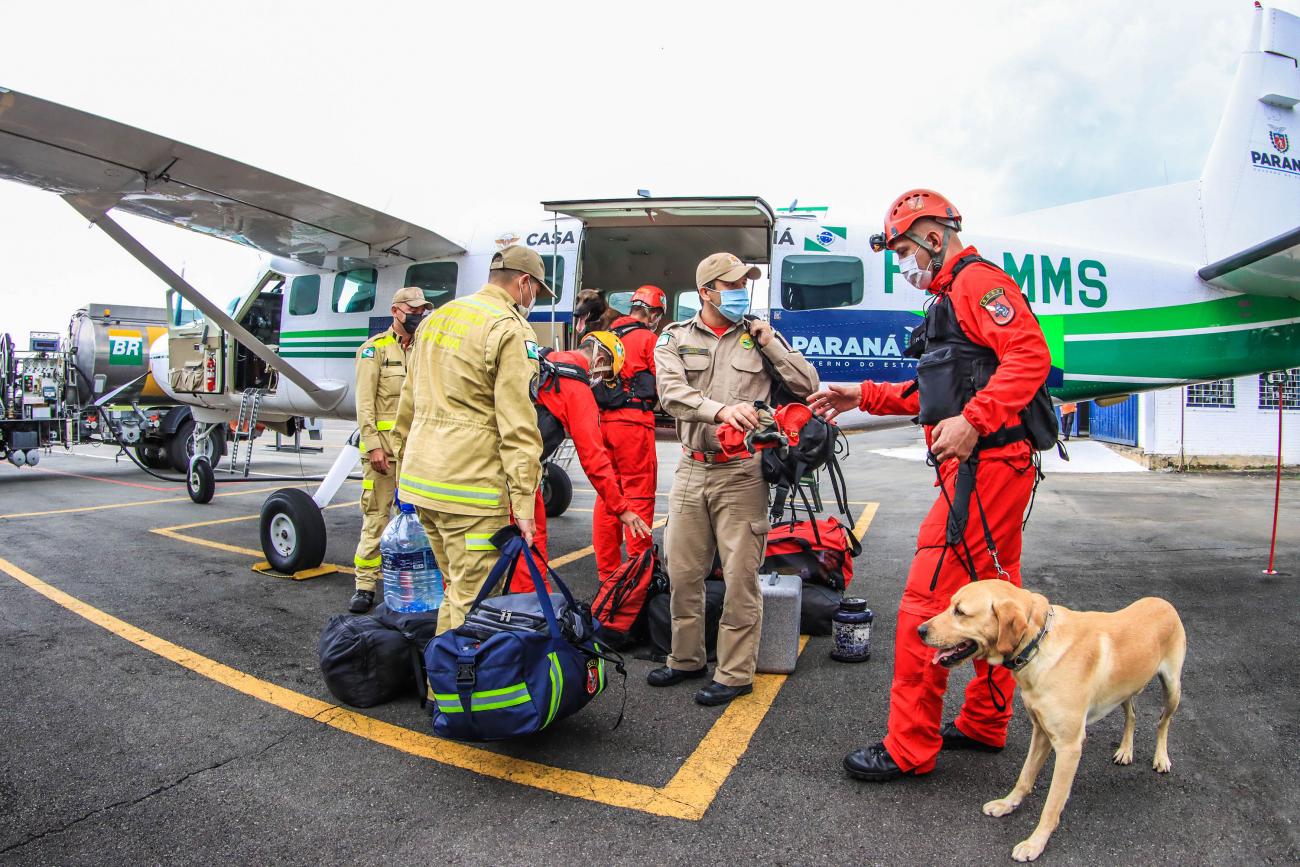 Duas equipes especializadas do Corpo de Bombeiros do Paraná foram enviadas ao Estado do Rio de Janeiro, neste sábado (19), para reforçar o trabalho de buscas por vítimas desaparecidas em Petrópolis. Ao todo, 10 militares do Grupo de Operações de Socorro Tático (GOST) e quatro cães farejadores atuarão nos próximos dias no atendimento das ocorrências naquela cidade, atingida por temporais.